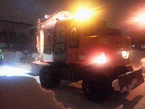 排雪が入ると、こういう大きな除雪機やトラックが何機も周辺をうろうろすることになるので、外に出るのは注意が必要。気軽に外に出られないので、ちょっとストレスかも…