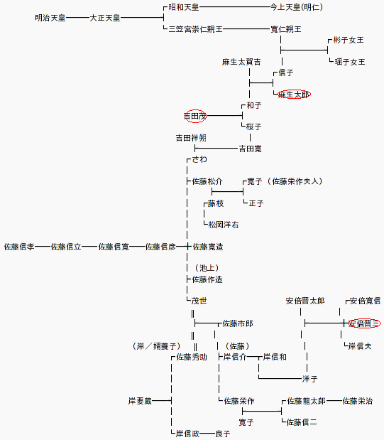 …麻生って、安倍晋三とも親戚だし、天皇家とも親戚だよね。ということは、安倍も天皇家と親戚。
